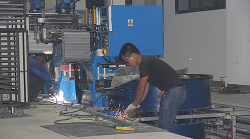 記者在園區(qū)車間內(nèi)探訪時看到,大部分的工序及設(shè)備已經(jīng)就位,并且員工們已經(jīng)正常、有序地投入生產(chǎn),只剩部分設(shè)備、設(shè)施還在組裝完善。在廠房一樓,工人們正在為電泳線烘道檢修平臺加裝護欄,主體龍骨架也在加班加點進行組裝。壓制車間的二十多臺壓機絕大部分已投入使用,有一小部分正在安裝、調(diào)試中。在廠房三樓,粘結(jié)公司的職能部門已全部搬遷入駐臨時辦公室,開啟忙碌的辦公模式,工人們正在抓緊時間安裝空調(diào)、電話……